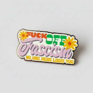 This hard enamel pin is plated with silver nickel and filled with colored enamel and UV printed details.