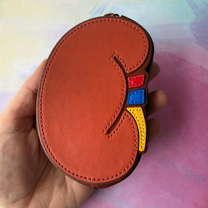 Kidney Coin Purse: PU Leather with red/brown zipper